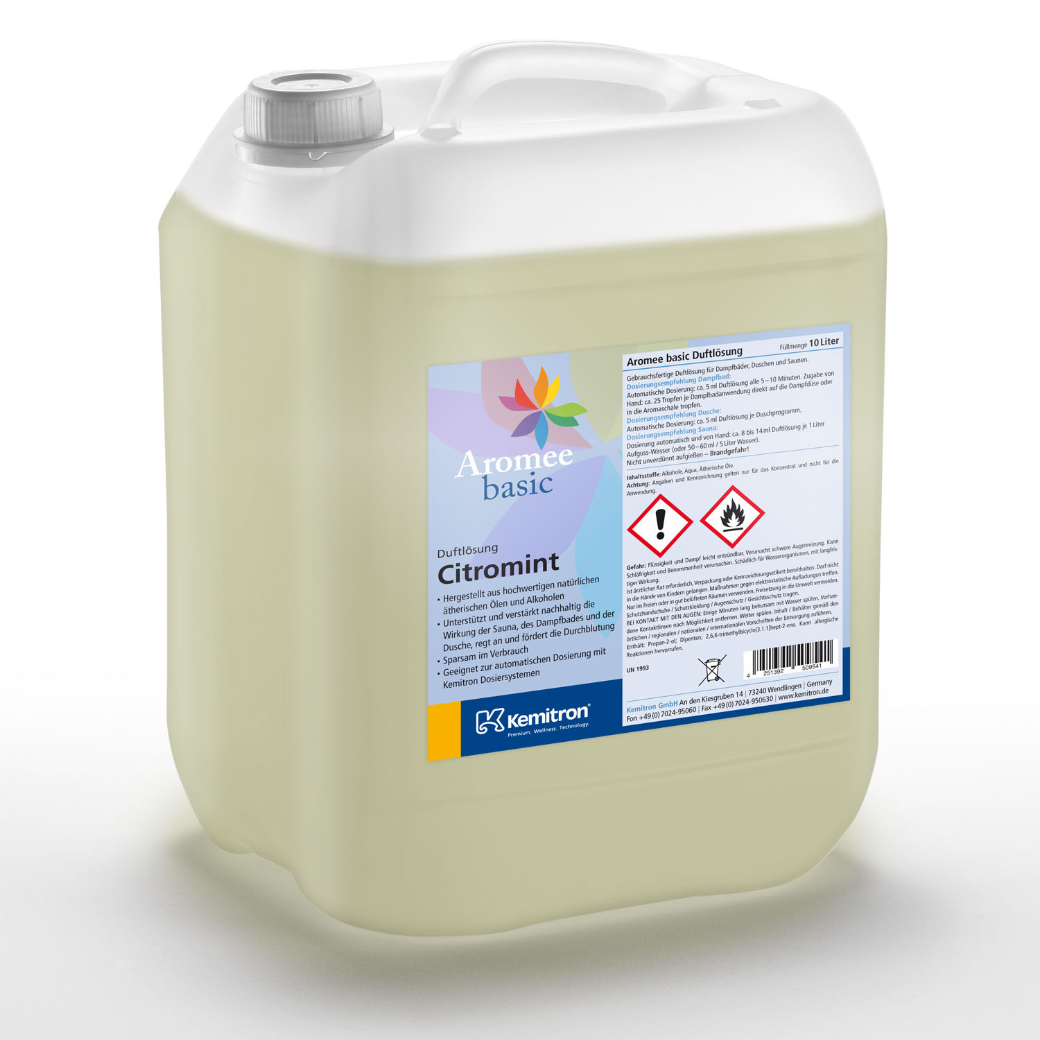 Gebrauchsfertige Duftlösung "CitroMint" in hoher Qualität für Dampfbäder, Duschen und Saunen. Guter Dufteffekt bei höherem Verbrauch – für kostenbewusste Großverbraucher mit Qualitätsanspruch.