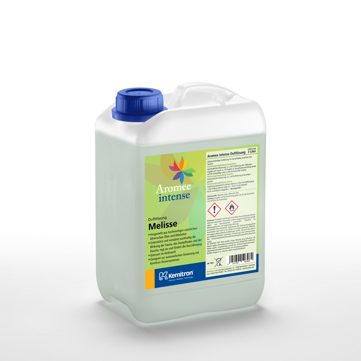 Gebrauchsfertige und sparsame Duftlösung "Melisse" in höchster Qualität für Dampfbäder, Duschen und Saunen. Guter Dufteffekt bei niedrigem Verbrauch.