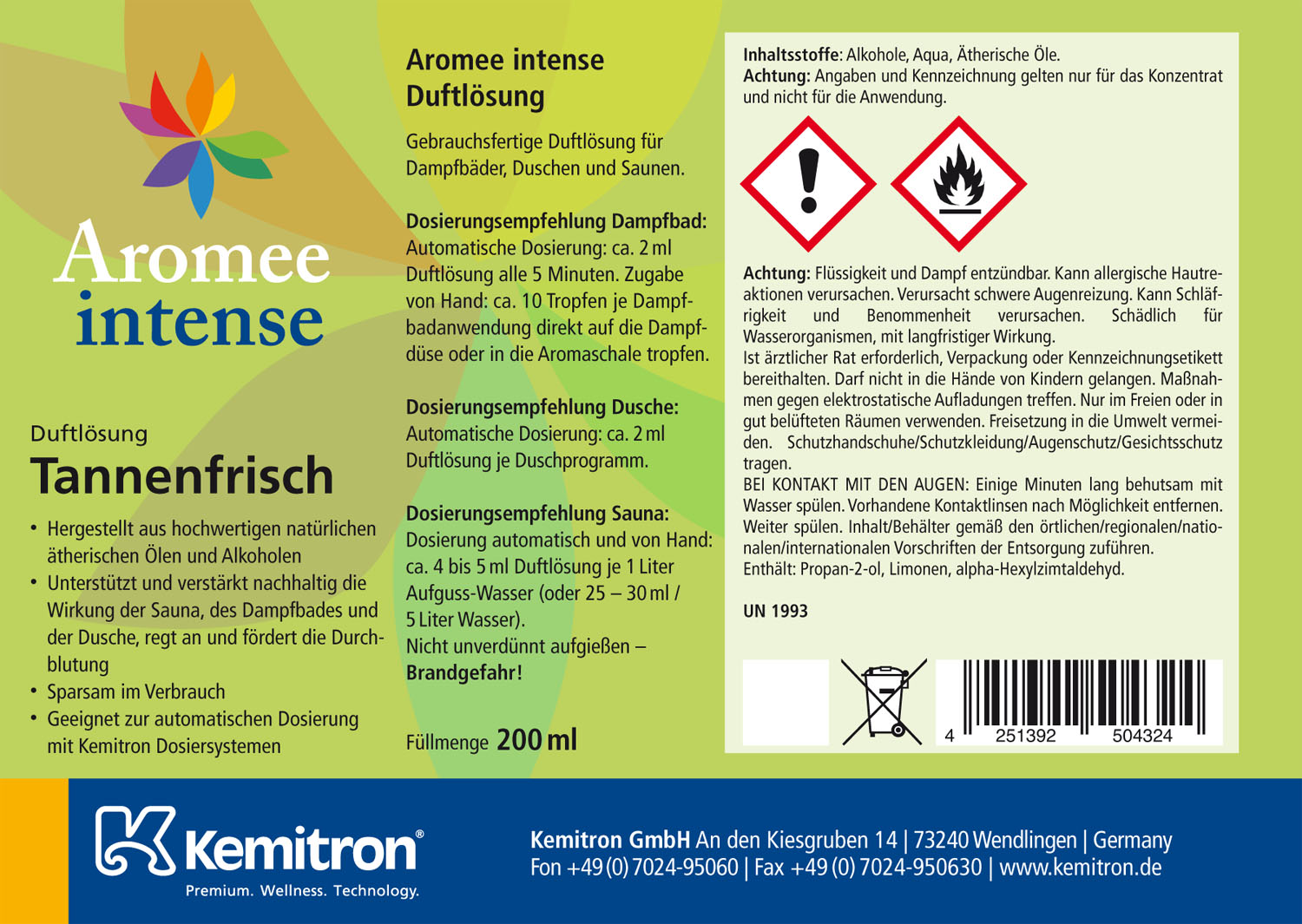 Gebrauchsfertige und sparsame Duftlösung "Tannenfrisch" in höchster Qualität für Dampfbäder, Duschen und Saunen. Guter Dufteffekt bei niedrigem Verbrauch.
